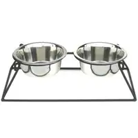 This elevated pet feeder is compact and consumes less space than conventional two-bowl feeders. A traditional style double diner with a butterfly inspired design on its sides. Non-skid plastic feet on legs. Its rounded sides keeps food and water centered for ease of eating. Sturdy wrought iron construction ensures that it lasts a lifetime.